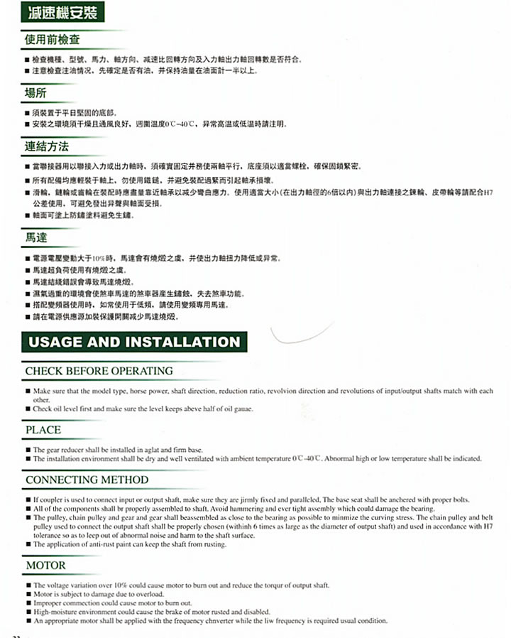 1、安裝減速機(jī)時,應(yīng)重視傳動中心軸線對中,其誤差不得大于所用聯(lián)軸器的使用補(bǔ)償量。對中良好能延長使用壽命,并獲得理想的傳動效率。